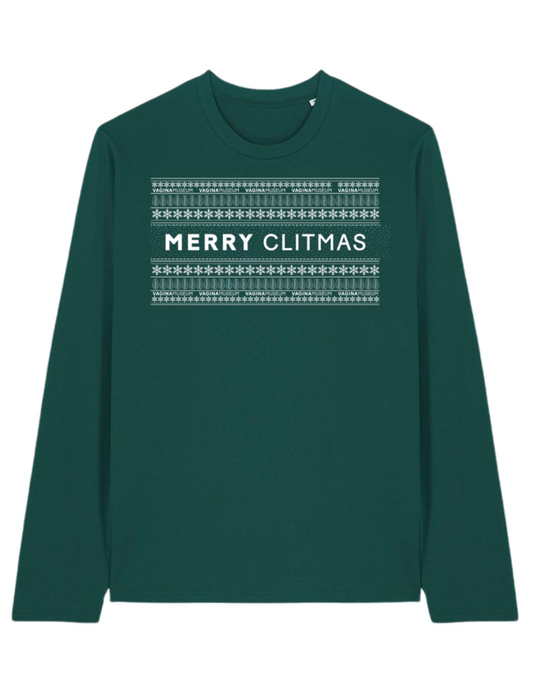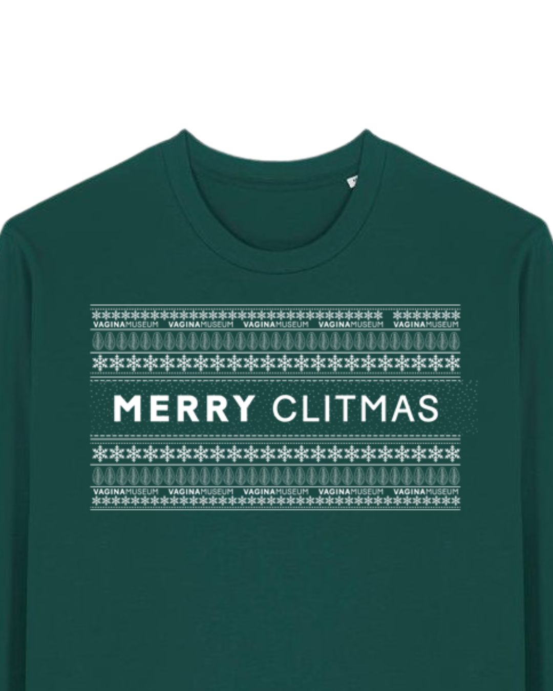 This seasonal snatch sensation comes as a wonderful forest green crew neck jumper, with a chest design of snowflakes, vulvas and our Merry Clitmas slogan.